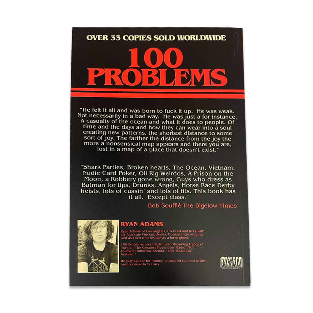 Ryan Adams of Los Angeles, CA is 48 and lives with his four cats Vincent, Agnes, Gobiashi, Griswald as well as Theo who resides as a force ghost. 100 Problems precedes his forthcoming trilogy of novels, "The Greatest Movie Ever Made," "Kill Yourself Tomorrow Brenda," and "Beautiful Asshole." He plays guitar for money. pinball for fun and writes novels cause he's crazy.