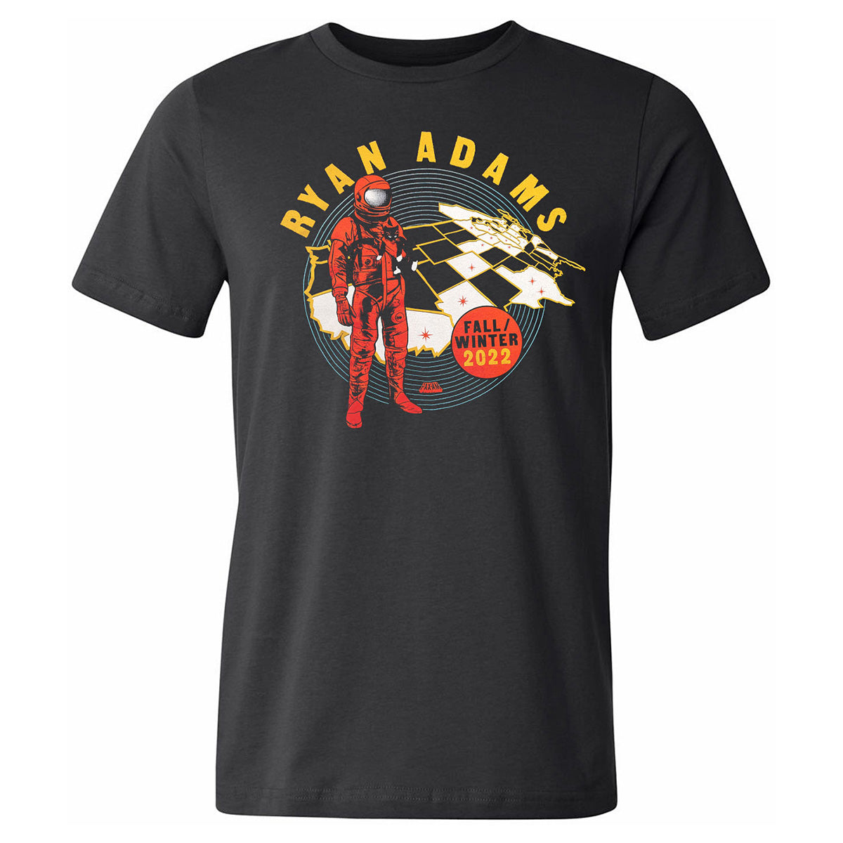Black unisex t-shirt featuring Ryan Adams "Spaceman Fall/Winter 2022 Tour" artwork printed on the front and back.