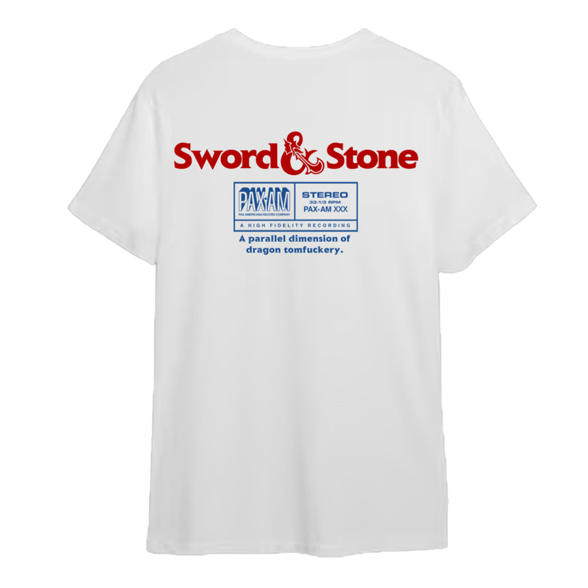 Vintage white crewneck unisex t-shirt featuring Sword & Stone album art printed on front and Sword & Stone graphic with PAX-AM logo on back.